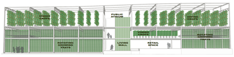 The production of locally produced hydroponic vegetables, fruits and flowers will be delivered fresh and directly to local consumers. Aquaponic hatcheries and growing tanks are integrated into each facility in creating a closed recirculation system benefiting both plants and fish through a process of exchanging nutrients for the plants with fresh water for the fish. The model will allow for the production of renewable energy to be generated and used at the site, and/or fed into the local power grid.